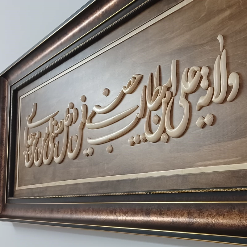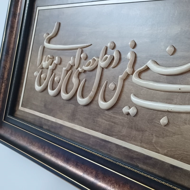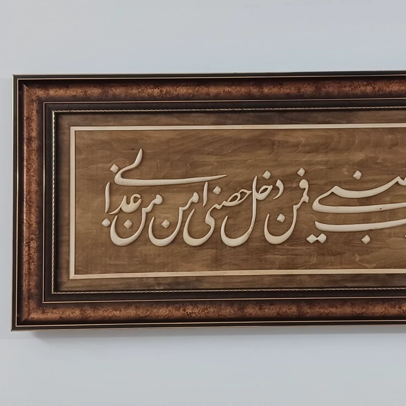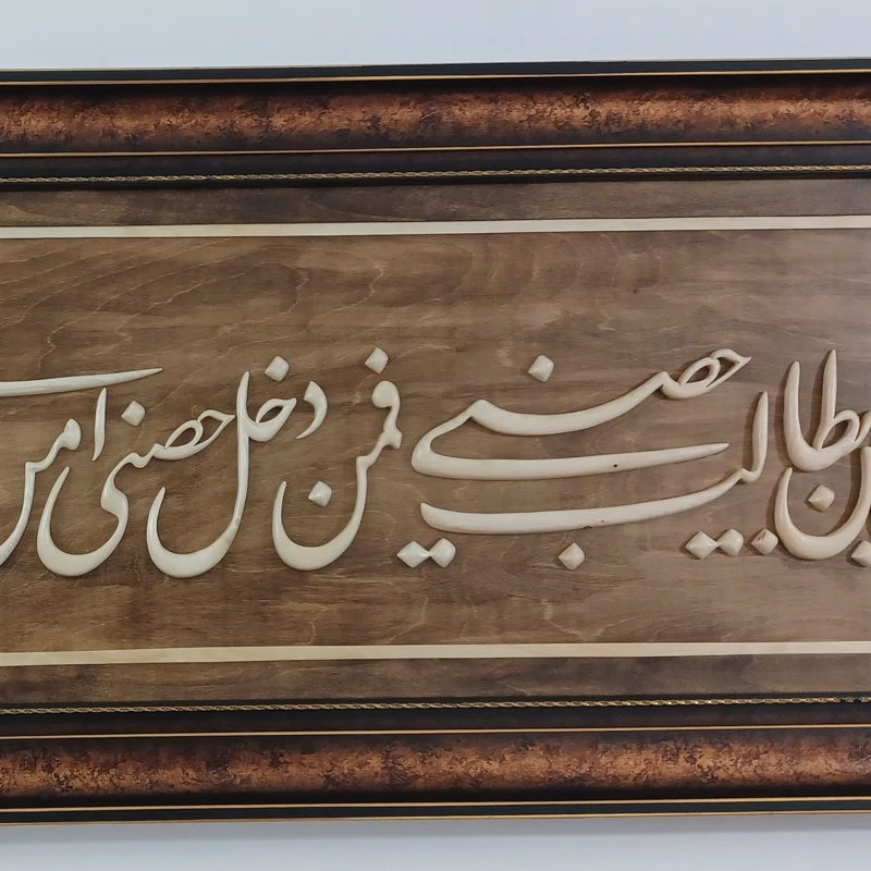 تابلو معرق منبت دستساز بسیار تمیز و حرفه ای کار شده با قیمت بسیار مناسب بدلیل اینکه تولید خودمون هست قابل سفارش در ابعاد دلخواهتون و حتی با متن مورد نظر خودتون سایز کار 60×150 هست پوشش نهایی کار پلی استر هست که باعث زیبایی دوچندان ،همچنین استحکام بیشتر و ماندگاری بالای کار شده. نمونه های تولیداتمون رو در غرفه مون مشاهده کنید😊🙏🌹 در ضمن میتونید همین کار رو در ابعاد کوچکتر و با قیمت مناسبتر سفارش بدین، براتون بسازیم