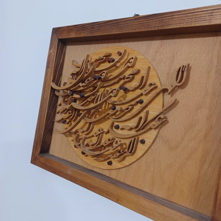 تابلو معرق دستساز قسمتی از مناجات نامه خواجه عبدالله انصاری با خط استاد یدالله کابلی متن: ..... الهی اگر عبدالله مجرم است از دوستان است ...... ساخته شده از چوبهای راش و عناب یک اثر خاص با چوب های خاص ✅️تک نسخه سایز = 22×28 با خرید این اثر ، یک تابلوی هنری کم نظیر رو برای خودتون خواهید داشت پیشنهاد میکنم از بقیه محصولات غرفه مون بازدید کنید😊 ضمنا میتونید متن مورد نظرتون رو سفارش بدین0