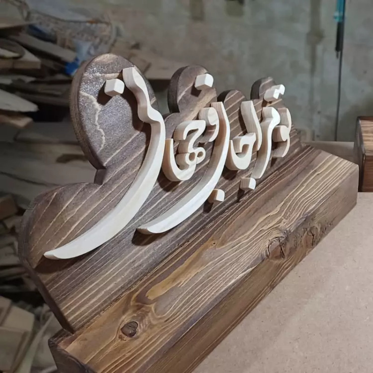تندیس چوبی رومیزی شعر دستساز سایز25 صنایع دستی بیاتانی