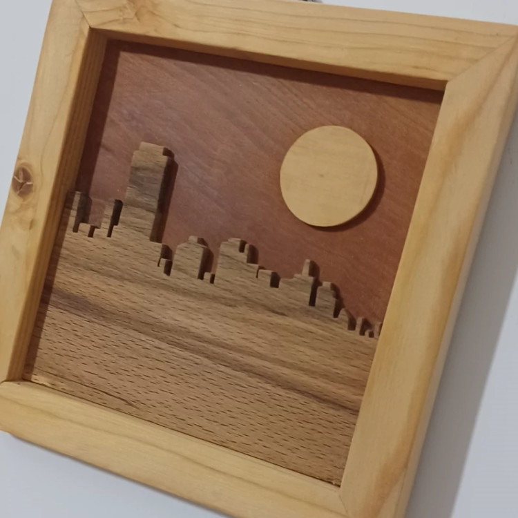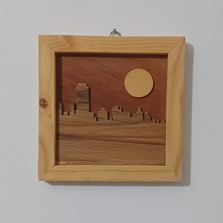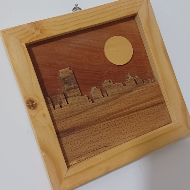 تابلو معرق منظره شهر سایز17در17 دستساز صنایع دستی بیاتانی