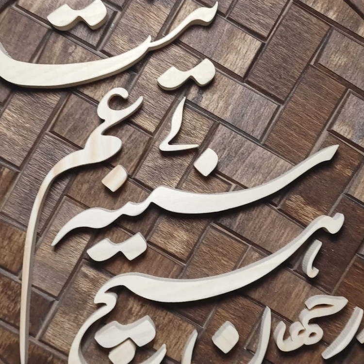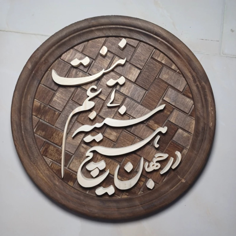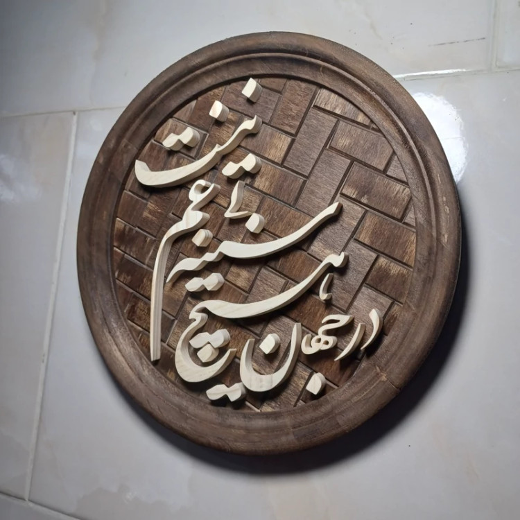 تابلو معرق دستساز در جهان هیچ سینه بی غم نیست تمام چوب زمینه آجری نوشته ها چوب روسی قاب چوب راش قطر تابلو 25 سانتیمتر هست وزن این کار بسیار سبک هست دارای کارتن و بسته بندی مناسب از بقیه محصولاتمون دیدن کنید🙏🌺😊