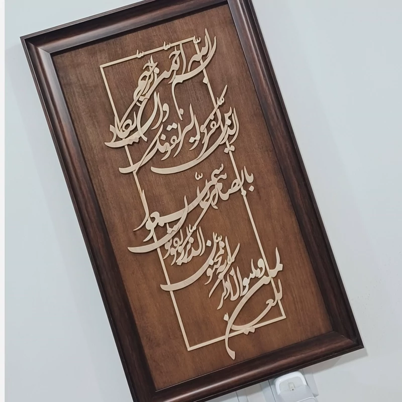 تابلو معرق وان یکاد سایز 35در60 دستساز یک کار خاص و زیبا که به تعداد محدود تولید شده و امکان داره که دیگه تکرار نشه🤓 همونطور که مشاهده میکنید نوشته ها بصورت سیاه قلم روی هم قرار گرفتن و همین، باعث زیبایی دو چندان این اثر هنری شده ویژگی دیگه این کار ، عمودی بودنش هست که در تابلوهای از این قبیل کمتر دیده میشه که وان یکاد ها بصورت عمودی و در واقع ایستاده، تولید بشن و اکثرا بصورت افقی هستن البته نمونه های دیگه وان یکاد هم در غرفه موجود هست که میتونید بازدید کنید. همینطور تابلوهای مذهبی و شعر که هر کدومشون زیبایی خاص خودشون رو دارن که در غرفه مون مدلهای زیادی ش رو موجود داریم. دارای بسته بندی مناسب جهت ارسال به سراسر کشور هر سوالی دارید بپرسید، در اسرع وقت پاسخ داده میشه🙏🌺😊
