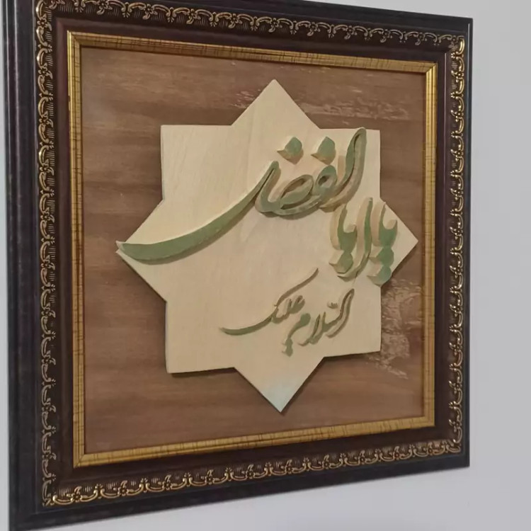 تابلو یا ابوالفضل چوبی دستسازسایز 30در30 صنایع دستی بیاتانی