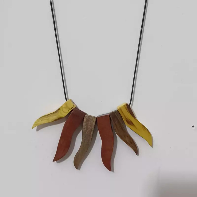 گردنبند چوبی دستساز مدل سرخپوستی صنایع دستی بیاتانی