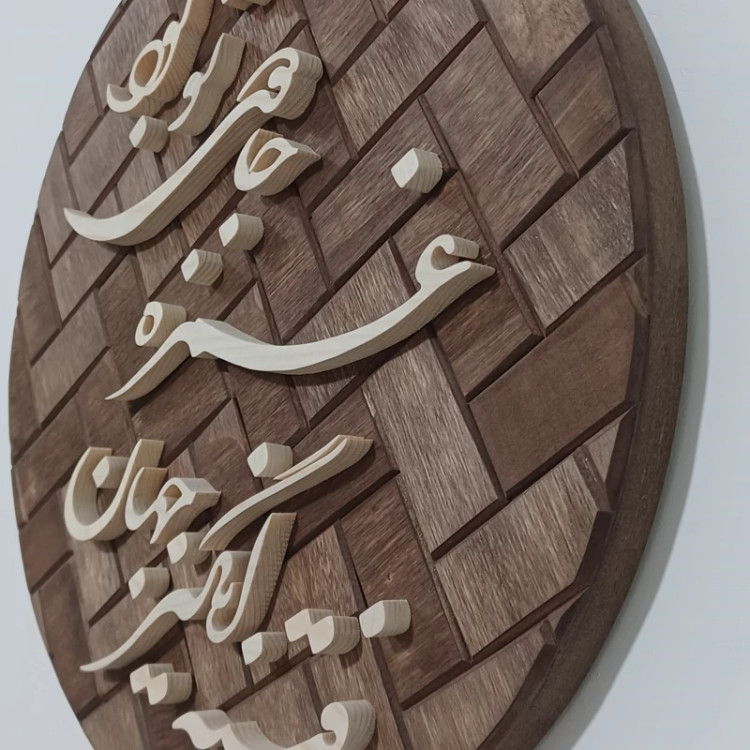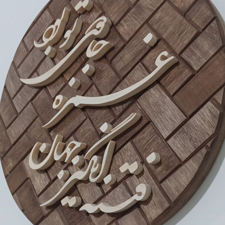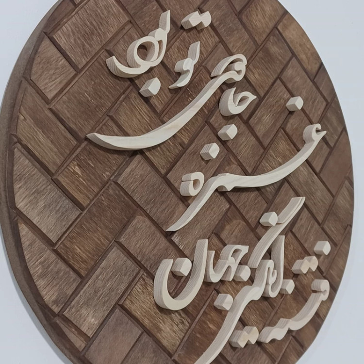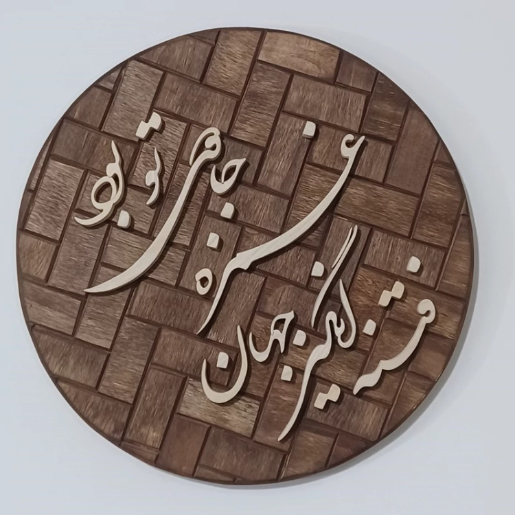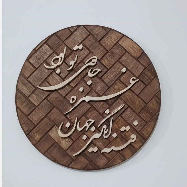 تابلو معرق دستساز زمینه آجری متن: فتنه انگیز جهان غمزه جادوی تو بود(شعر حافظ) قطر کار ۲۶ سانتیمتر هست . نوشته ها از چوب روسی با ضخامت حدود 1 سانت ساخته شده بسیار با دقت کار شده دارای بسته بندی مناسب جهت ارسال به سراسر کشور پیشنهاد میکنم از بقیه تولیداتمون هم دیدن کنید😍🙏🌺