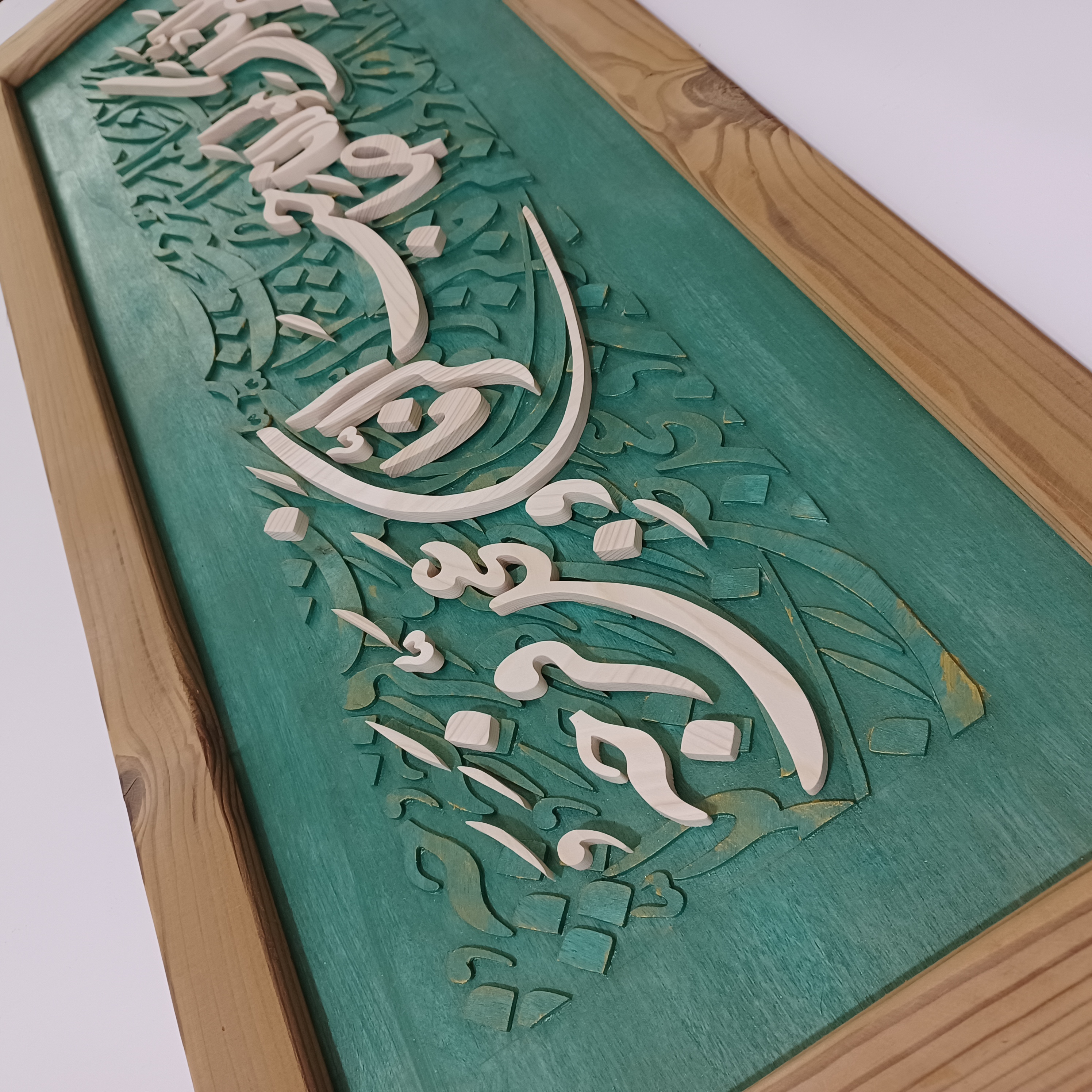 تابلو معرق اللهم بارک لمولانا صاحب الزمان سبک اجرا : کالیگرافی حرفه ای سایز 35×85 دستساز تمام چوب بسیار با دقت و با حساسیت ساخته شده دارای کارتن و بسته بندی مناسب جهت ارسال به سراسر کشور قابل سفارش با متن دلخواه شما قابل سفارش در سایز دلخواهتون قابل سفارش با ترکیب رنگ دلخواه شما مدل های دیگه همین متن و کارهای دیگه هم در غرفه مون موجود هست، در سایز های مختلف. پیشنهاد میکنم از بقیه تولیداتمون دیدن کنید🙏🌹😊