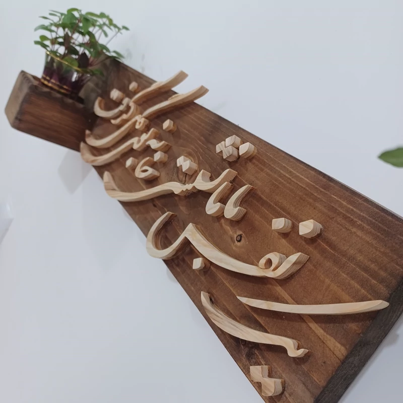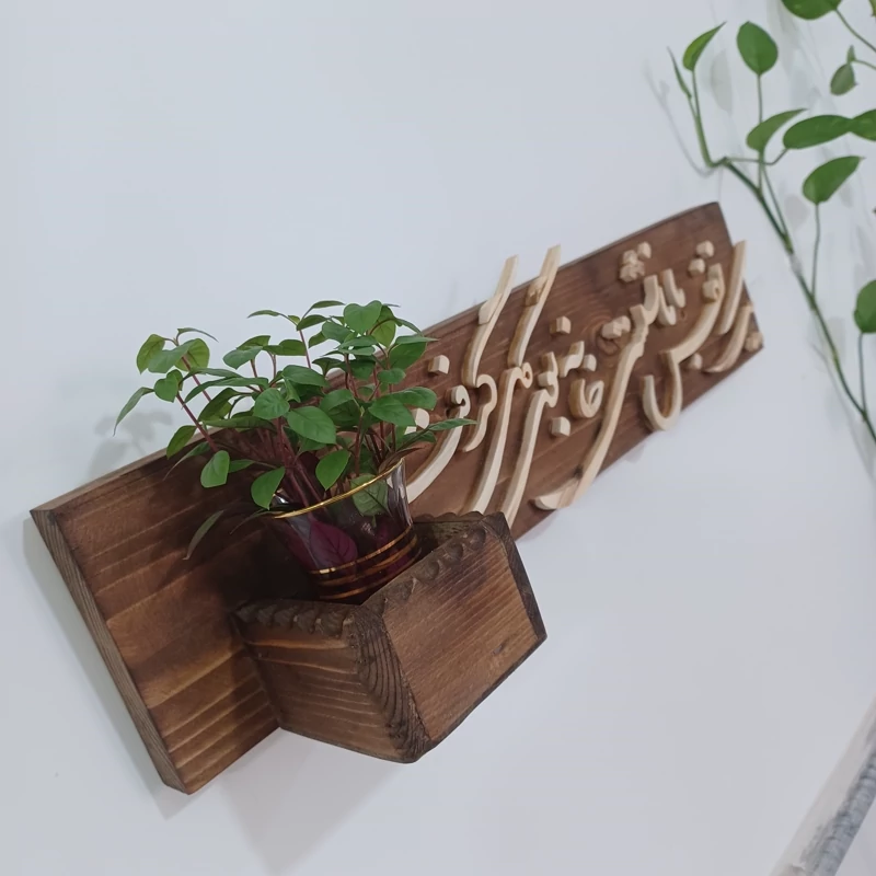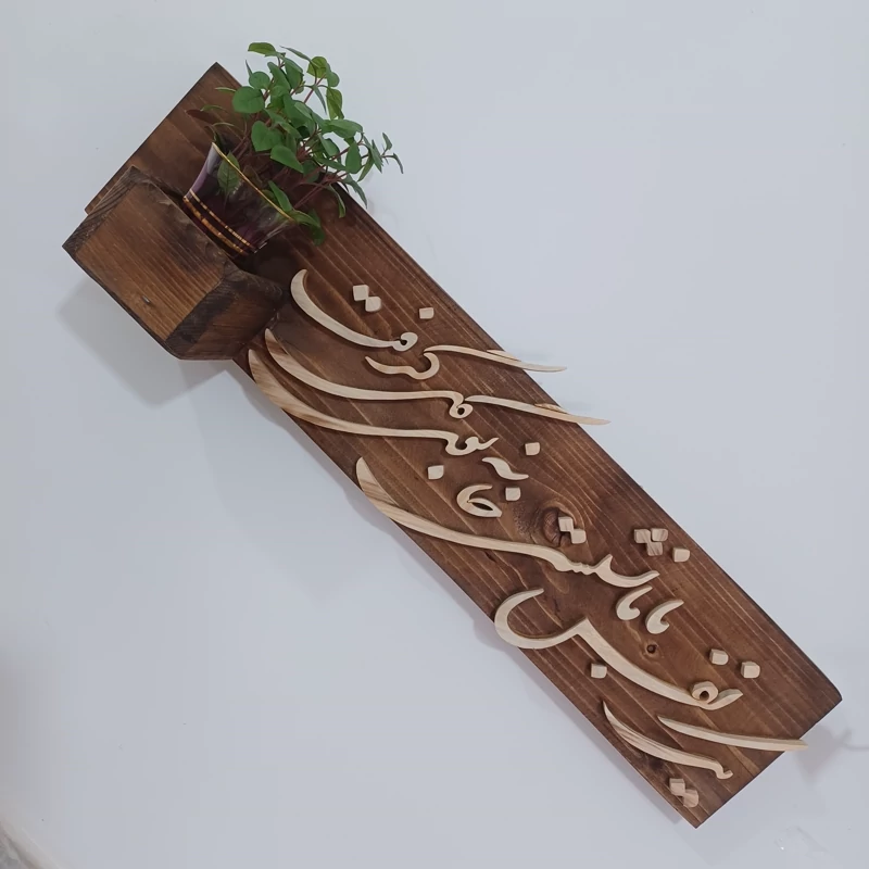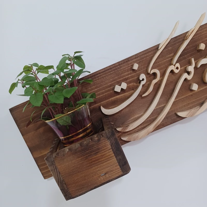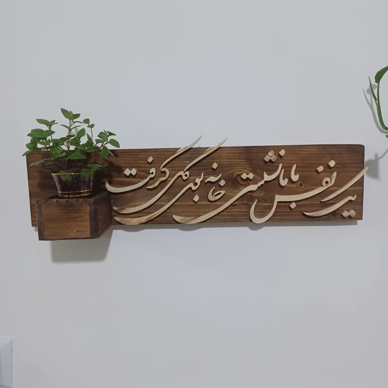 شلف دیواری چوبی دستساز سایز 50 سانتیمتر ساخته شده با چوب روسی متن : یک نفس با ما نشستی خانه بوی گل گرفت با جای گلدان و قابلیت نصب قلاب برای جای کلید(تصاویر آخر) دارای کارتن و بسته بندی مناسب جهت ارسال قابل سفارش با متن دلخواه شما