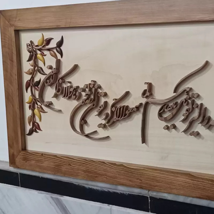 تابلو وان یکاد چوبیدستساز نوشته ها از چوب گردو با ضخامت ۱۰ میلیمتر. برگهای حاشیه با چوبهای توسکا،راش،سنجد،آزاد.عناب،زرشک کاملا دستساز. قابل سفارش در رنگبندی و سایز دلخواهتون پوشش نهایی= پلی استر یک کار خاص و منحصر به فرد نمونه کارهای دیگه هم در غرفه مون موجود هست که پیشنهاد میکنم دیدنشون رو از دست ندین. هدف ما جلب رضایت شماست🙏😊⚘️