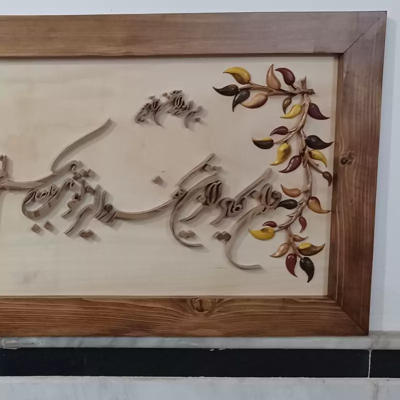 تابلو وان یکاد چوبیدستساز نوشته ها از چوب گردو با ضخامت ۱۰ میلیمتر. برگهای حاشیه با چوبهای توسکا،راش،سنجد،آزاد.عناب،زرشک کاملا دستساز. قابل سفارش در رنگبندی و سایز دلخواهتون پوشش نهایی= پلی استر یک کار خاص و منحصر به فرد نمونه کارهای دیگه هم در غرفه مون موجود هست که پیشنهاد میکنم دیدنشون رو از دست ندین. هدف ما جلب رضایت شماست🙏😊⚘️