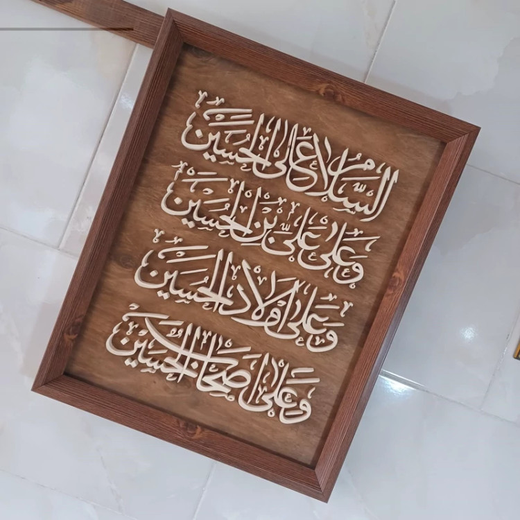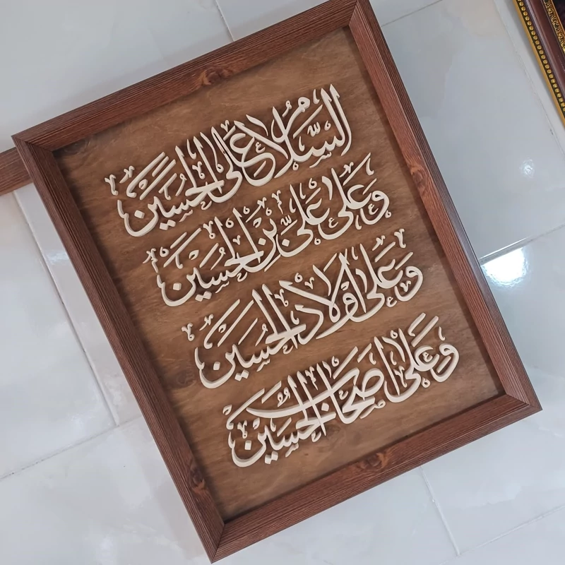 السلام علی الحسین و علی علی بن الحسین و علی اولاد الحسین و علی اصحاب الحسین سلام های زیارت عاشورا معرق دستساز سایز 40×50 ساخته شده با چوب روسی درجه یک قابل سفارش در ابعاد دلخواه شما قابل سفارش با متن دلخواهتون پیشنهاد میکنم از بقیه محصولاتمون دیدن کنید🙏🌺😊