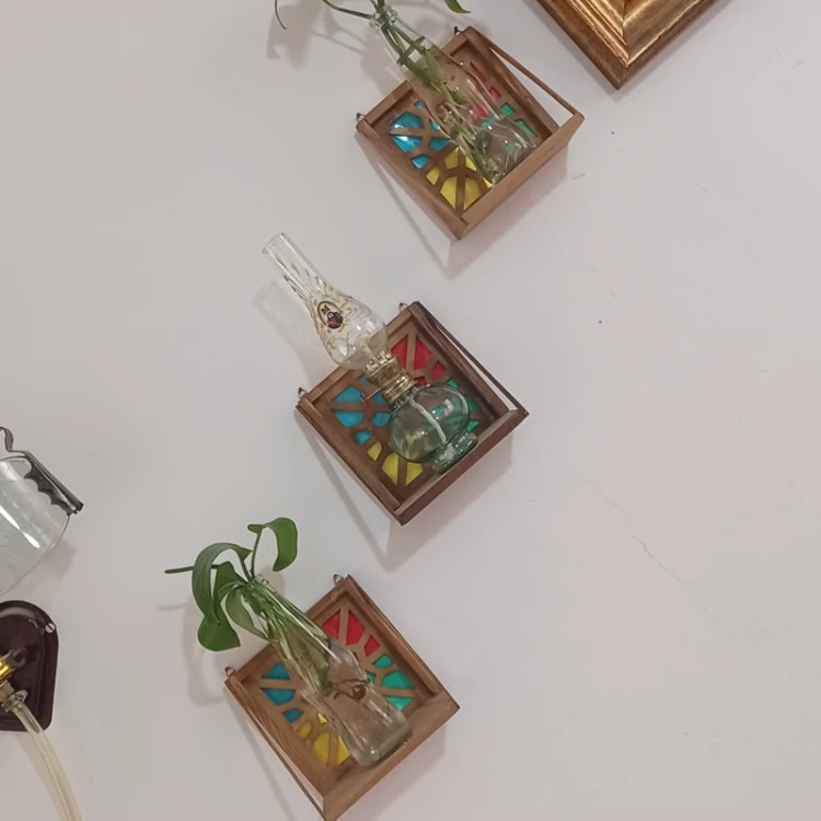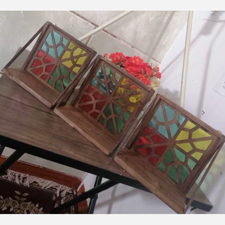 شلف دیواری سنتی ست 3 تایی سایز 15در15 چوبی صنایع دستی بیاتانی