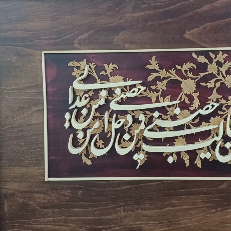 تابلو آیه ولایت سایز 50 در70 با پوشش پلی استر ولایت علی بن ابیطالب حصنی فمن دخل حصنی امن من عذابی دستساز و حرفه ای ساخته شده با چوب های مرغوب ارسال به سراسر کشور بسته بندی مناسب 😊 قابل سفارش با متن دلخواه شما پیشنهاد میکنم از تولیدات دیگه مون هم بازدید کنید