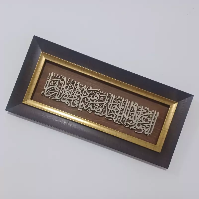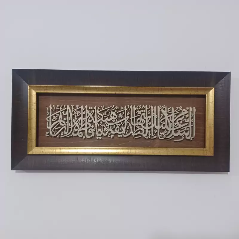 تابلو معرق دستساز سایز 23×50 السلام علیک ایتها الصدیقه الشهیده یا فاطمه الزهرا یک اثر خاص و تکرار نشدنی، که با ظرافت و دقت بسیار بالا و خیلی خیلی تمیز ، کار شده ساخته شده با چوب روسی درجه یک ضخامت نوشته ها یک سانتیمتر هست قاب بسیار زیبا و منحصر به فرد قابل سفارش در سایز بزرگتر نمونه های دیگه هم در غرفه مون موجود هست در ضمن میتونید متن مورد نظر خودتون رو هم سفارش بدین که براتون بسازیم