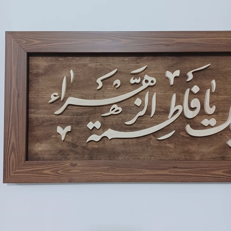 تابلو معرق یا فاطمه الزهرا سایز 30×76 دستساز یک کار بسیار زیبا که با چوب روسی ساخته شده که در ضمن سایز کوچکترش هم در غرفه مون موجود هست😊 دارای کارتن و بسته بندی مناسب جهت ارسال به سراسر کشور قابل سفارش با متن دلخواه شما قابل سفارش در سایز دلخواه شما هر سوالی داشتین بپرسید، در اسرع وقت پاسخ داده میشه. از بقیه محصولاتمون دیدن کنید🌺