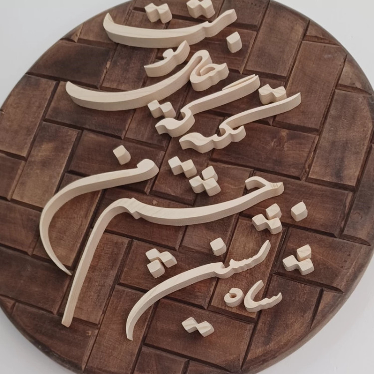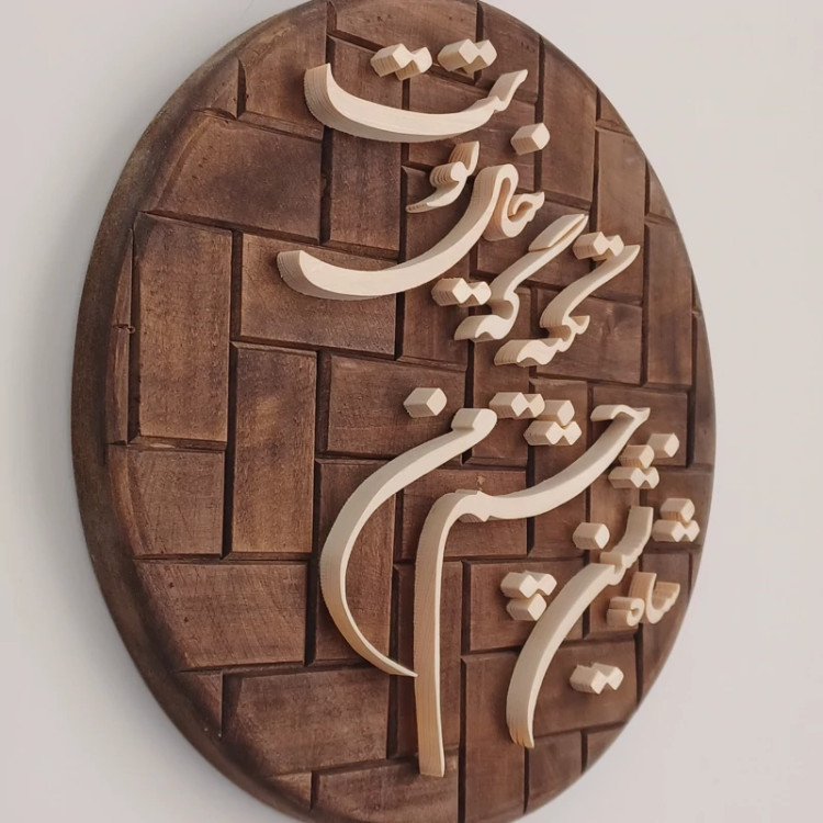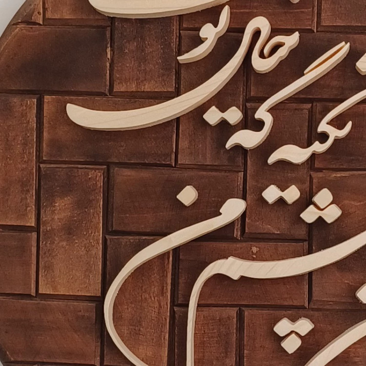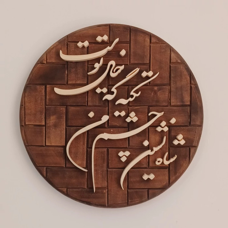 تابلو شعر چوبی با زمینه گرد و آجری متن : شاه نشین چشم من تکیه گه خیال توست نوشته ها چوب روسی با ضخامت 10 میلیمتر زمینه چوب روسی دارای جعبه مخصوص و بسته بندی مناسب کلا با دست کار شده و یک سبک جدید هست یک کار خاص دایره ای که میتونه منزلتون رو زیبا کنه. نمونه شعر دیگه همین کار هم موجود هست در غرفه خرید مستقیم از تولید کننده باقیمت مناسب