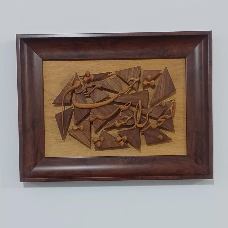 این تابلو با تکنیک منبت معرق خط ساخته شده